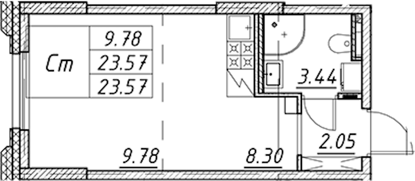 • Площадь23,57 м2