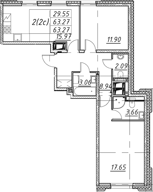 - Площадь63,27 м2