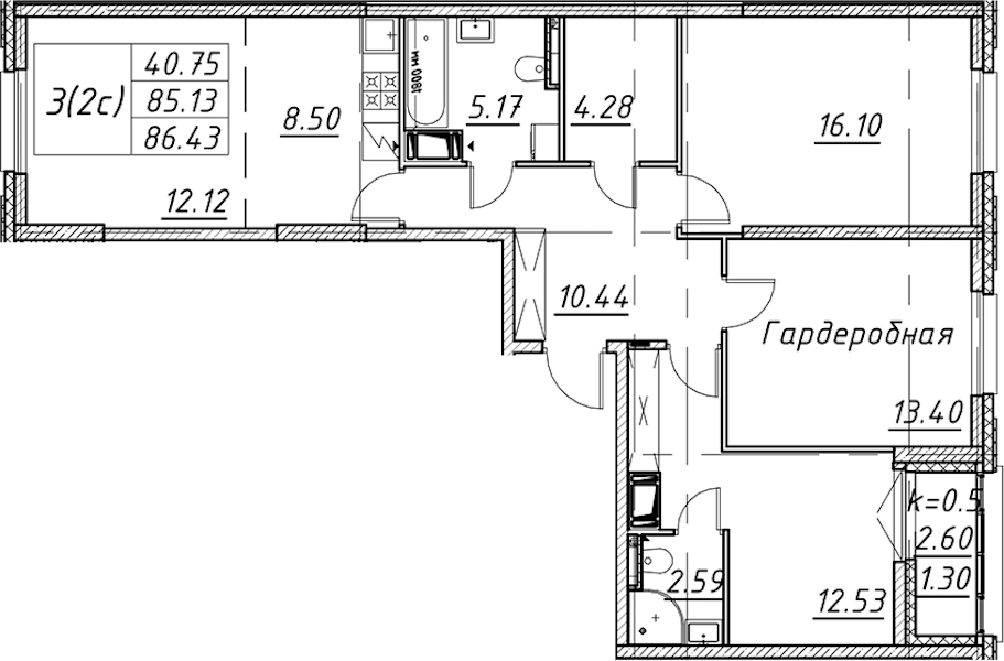 • Площадь86,43 м2