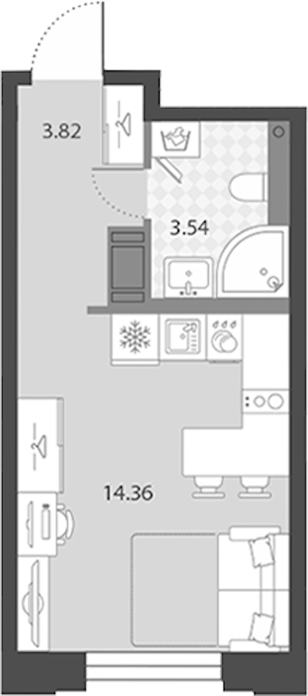 Квартира-студия на 3-ем этаже 21,72 кв.м