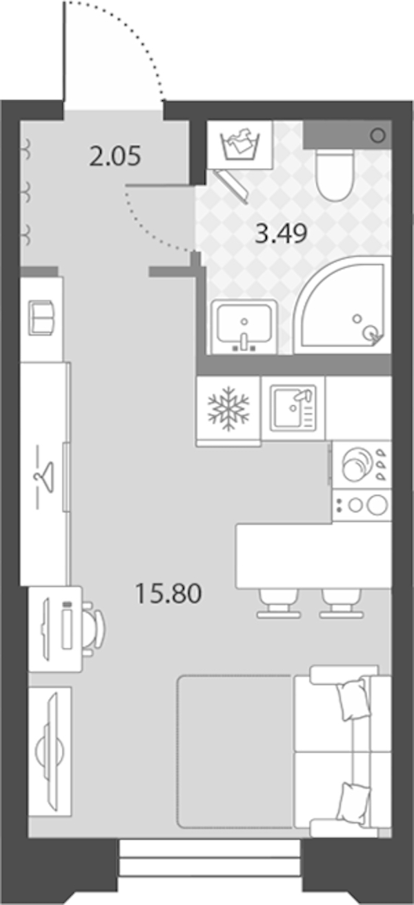 Квартира-студия на 2-ом этаже 21,34 кв.м