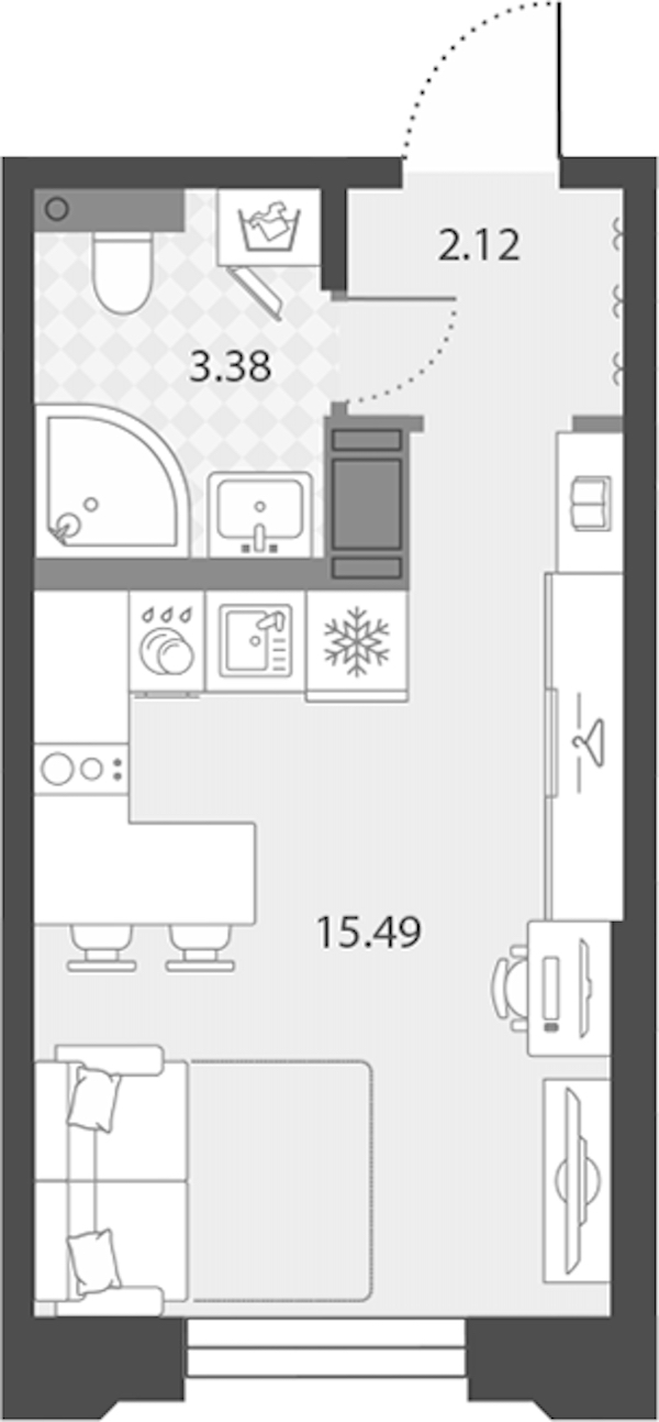 Квартира-студия на 5-ом этаже 20,99 кв.м