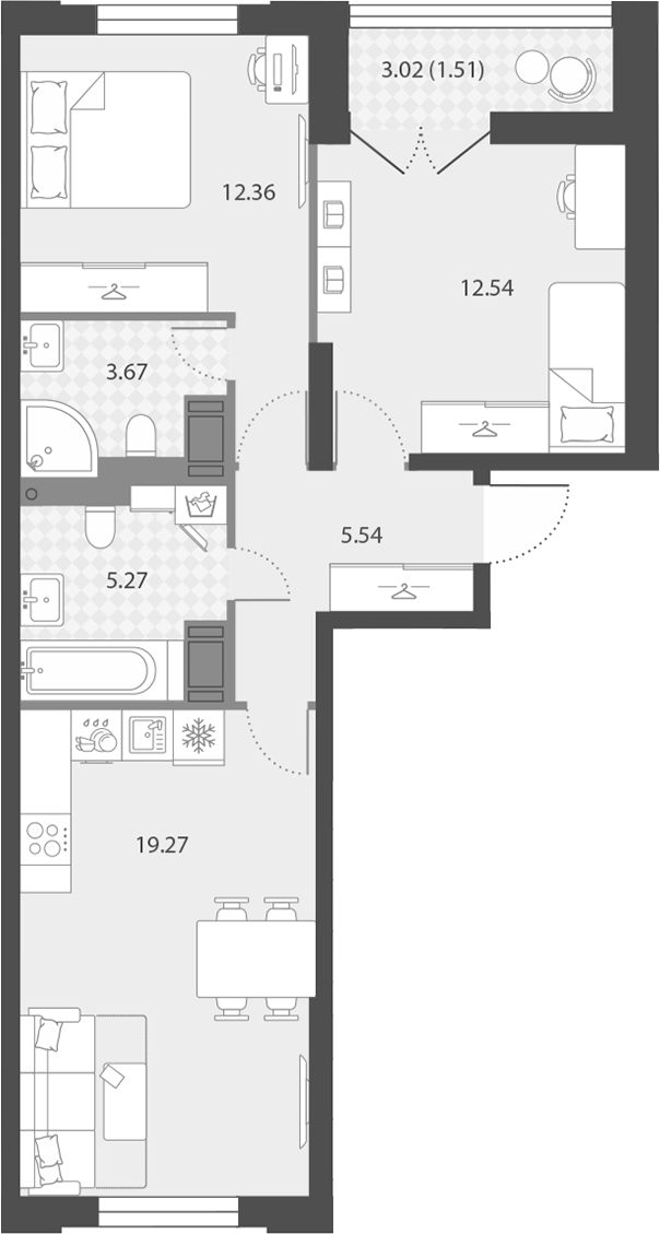 Двухкомнатная квартира на 15-ом этаже 60,16 кв.м