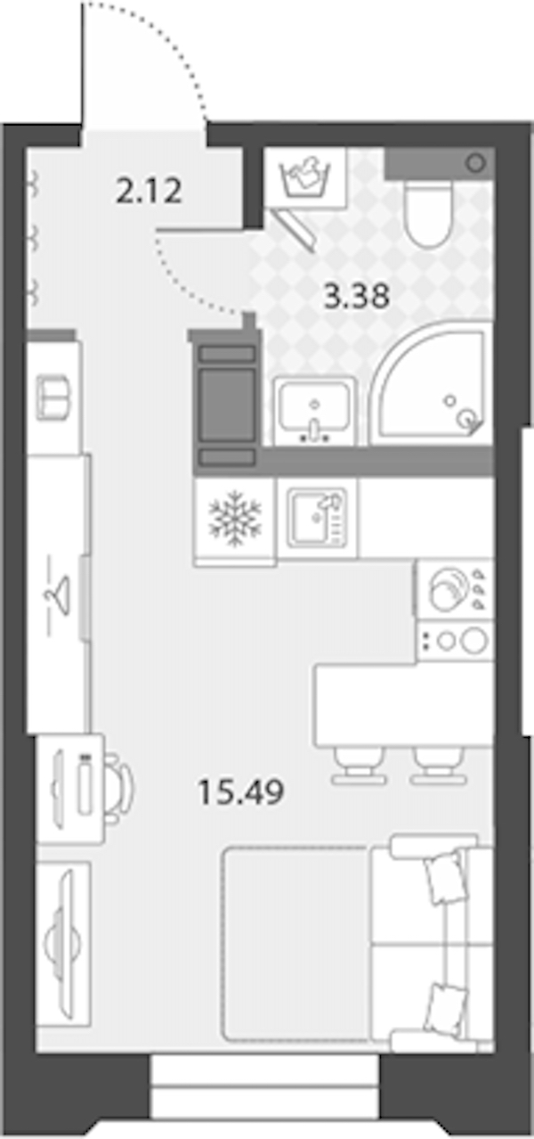 Квартира-студия на 3-ем этаже 20,99 кв.м
