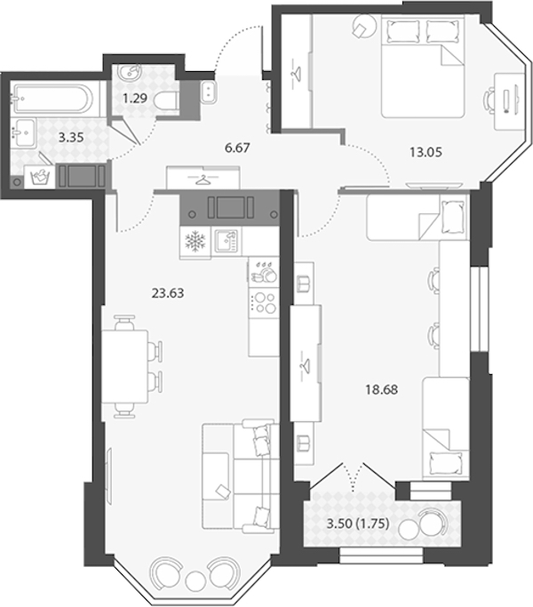 - Площадь кухни23,63 м2