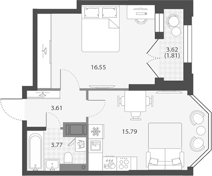 - Площадь кухни15,79 м2