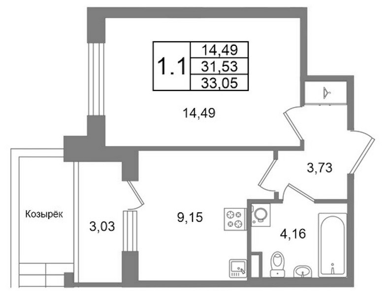 - Площадь31,53 м2