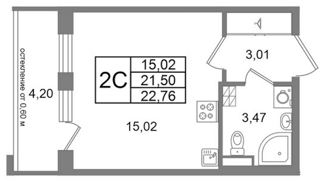 - Площадь21,5 м2
