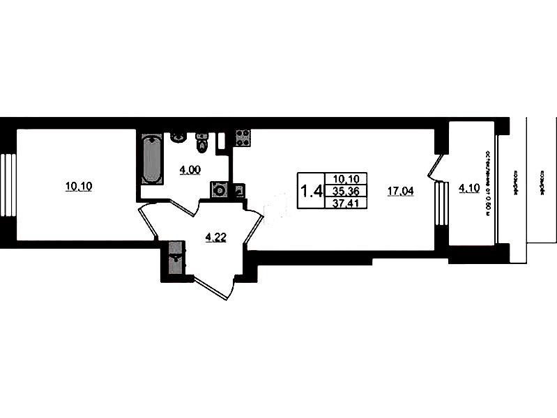 Однокомнатная квартира на 2-ом этаже 35,36 кв.м