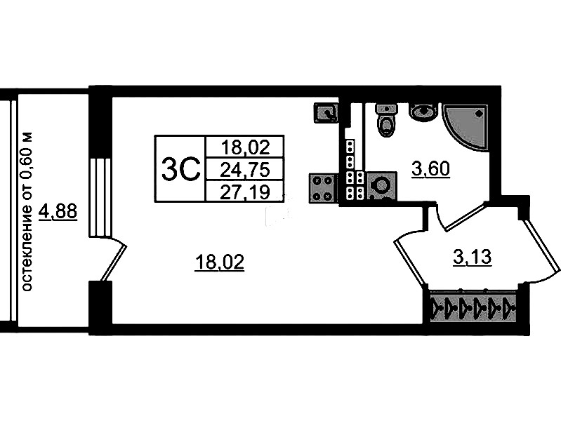 Квартира-студия на 4-ом этаже 24,75 кв.м