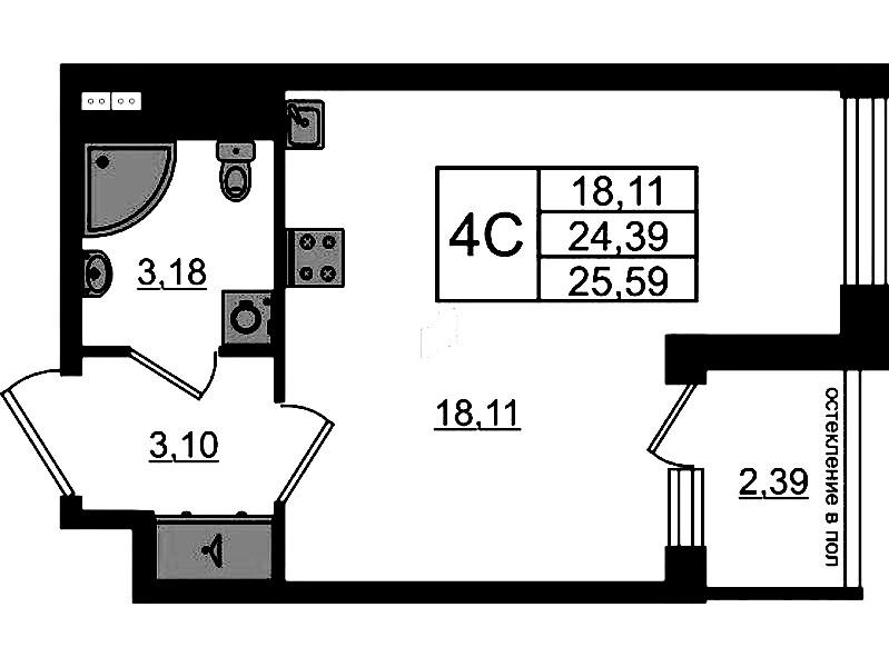 - Площадь24,39 м2