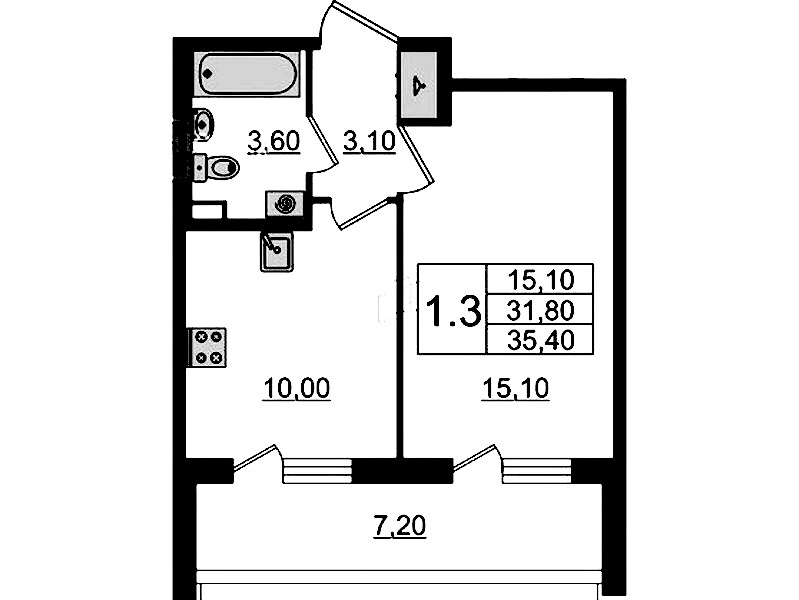 - Площадь35,6 м2