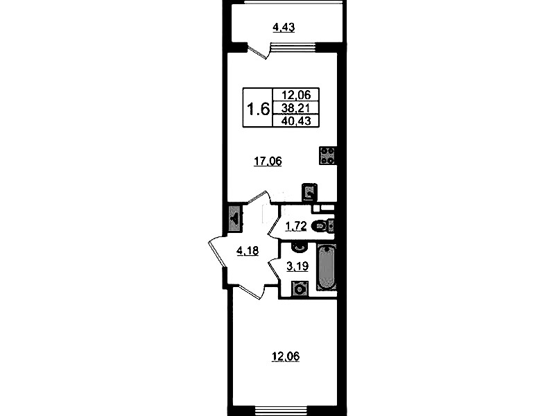 - Площадь кухни17,06 м2