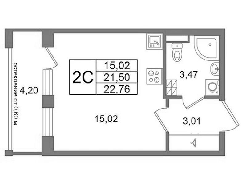 - Площадь21,5 м2