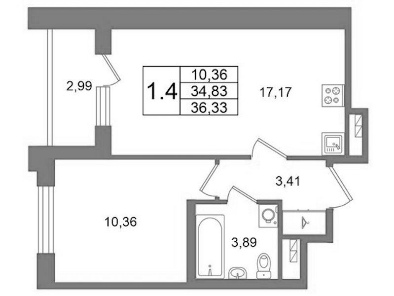 - Площадь34,83 м2