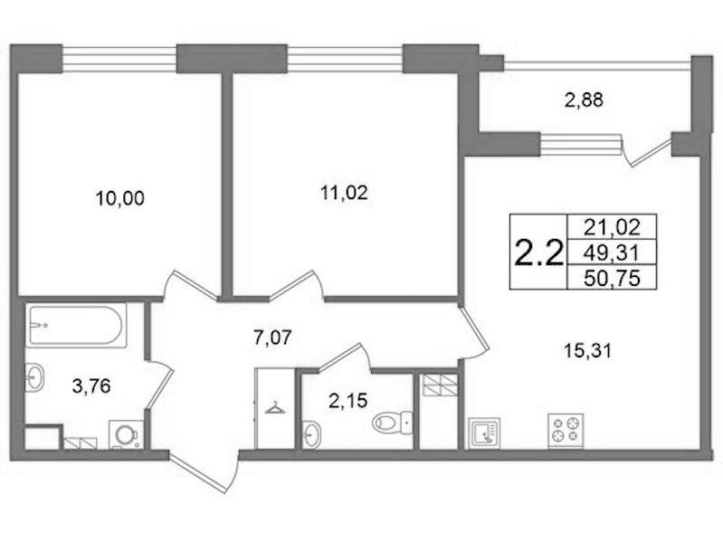 - Площадь49,31 м2