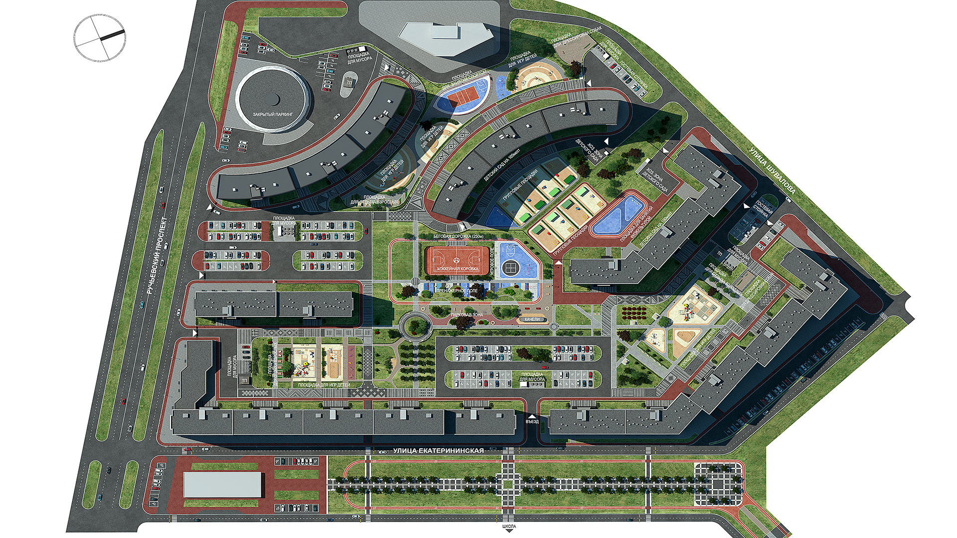 - На территории ЖК «Урбанист» спроектирован свой детский сад и физкультурно-оздоровительный комплекс, а также, многоуровневый паркинг на 3000 мест.