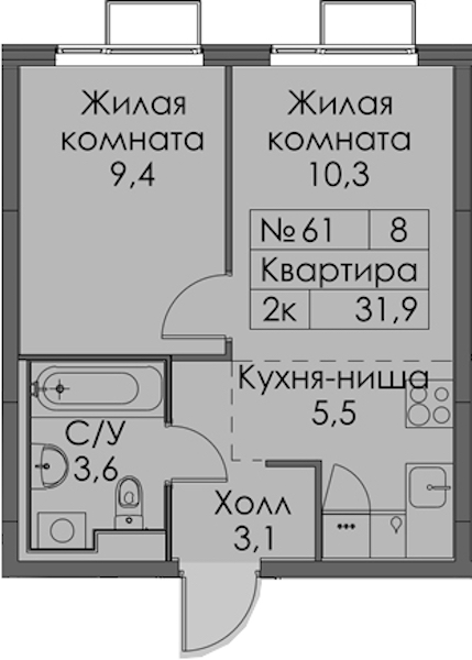- Площадь31,9 м2