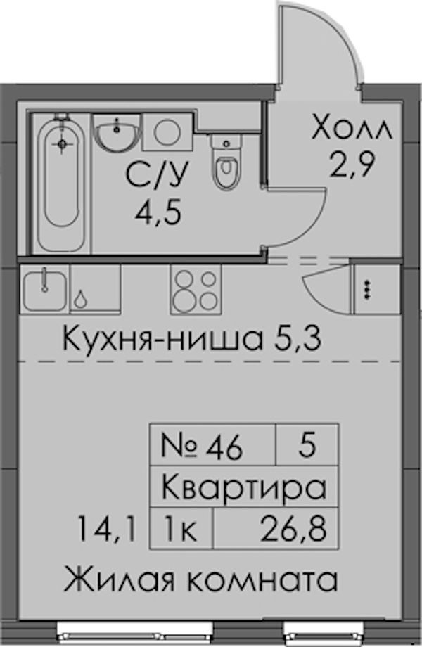 Квартира-студия на 9-ом этаже 26,8 кв.м