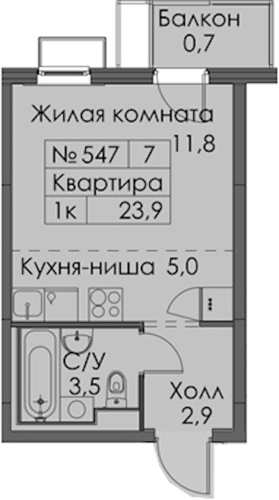 Квартира-студия на 8-ом этаже 23,9 кв.м