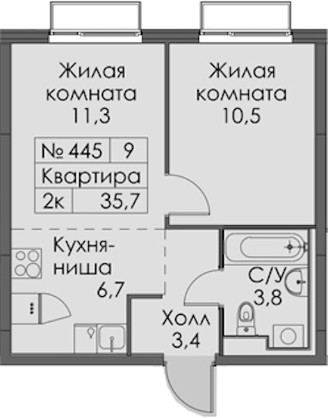• Площадь35,7 м2