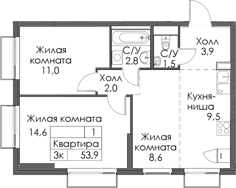 - Площадь53,9 м2