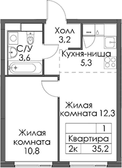 - Площадь35,2 м2