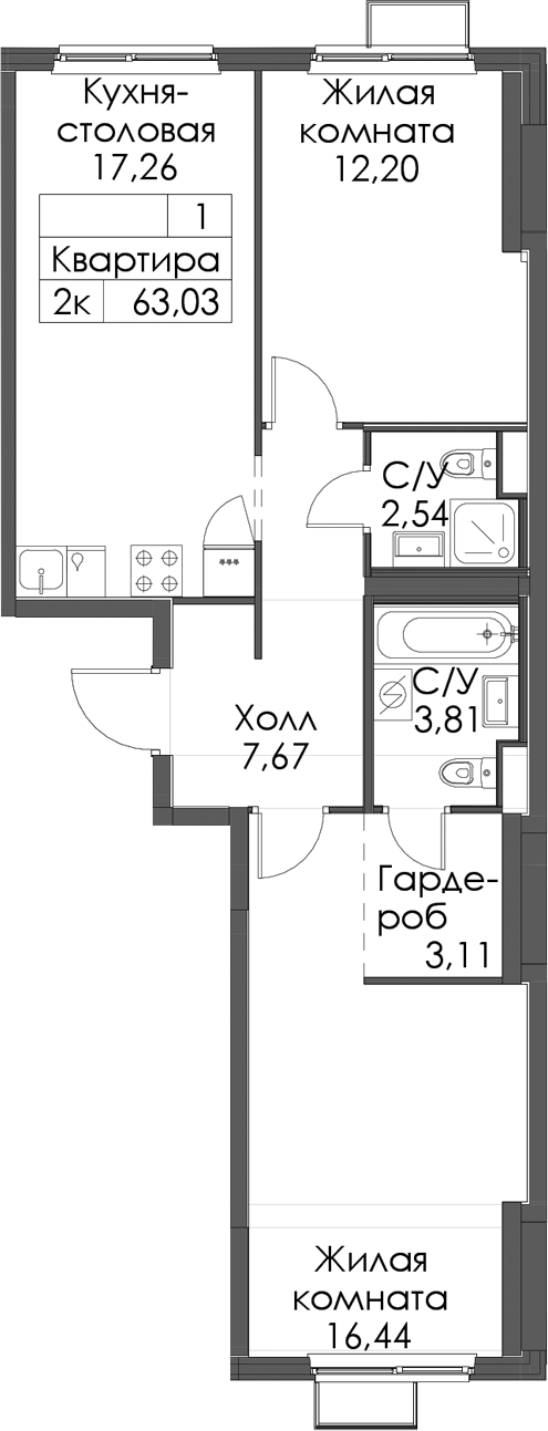 - Площадь63,03 м2