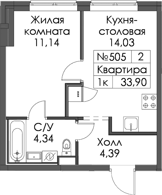 Однокомнатная квартира на 1-ом этаже 33,9 кв.м