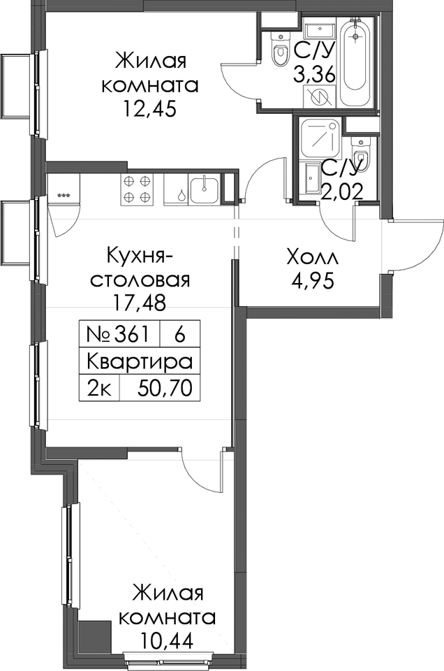 - Площадь50,7 м2