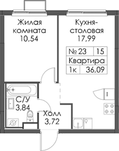 - Площадь36,09 м2