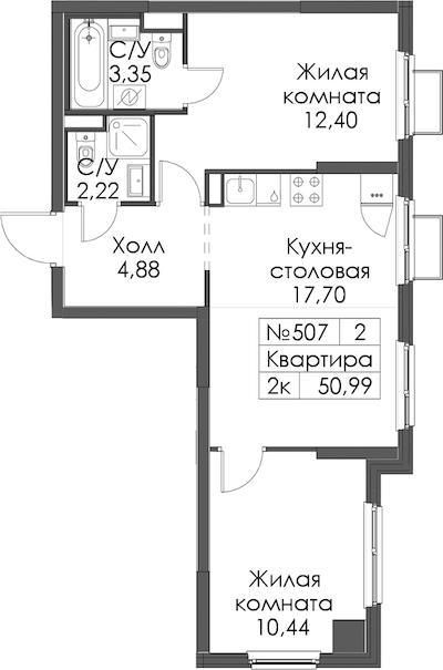 - Площадь50,99 м2