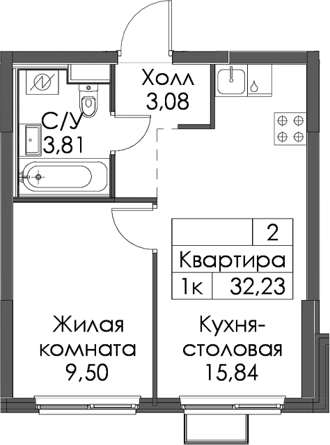 • Площадь32,23 м2