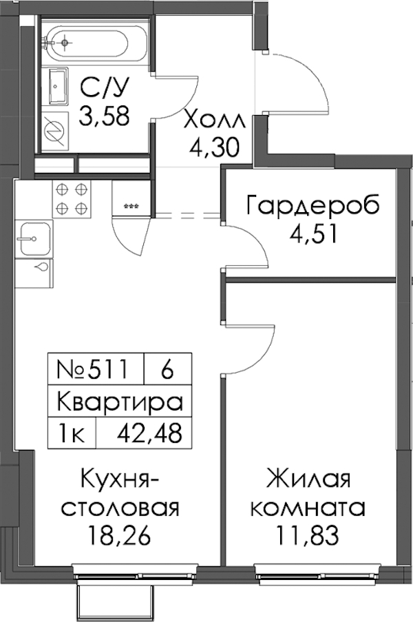 • Площадь42,48 м2