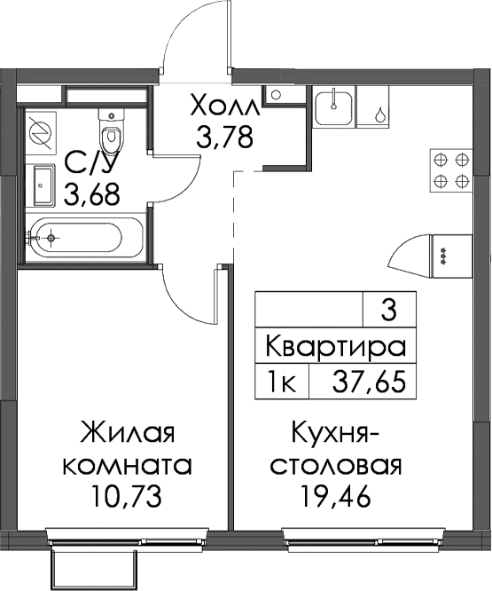 • Площадь37,65 м2