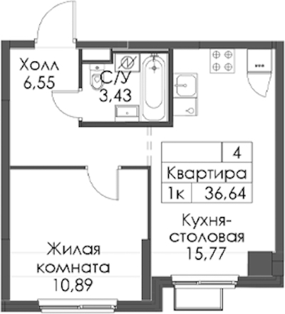 - Площадь36,64 м2