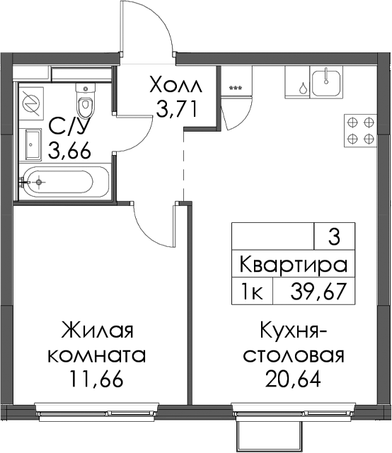 - Площадь39,67 м2