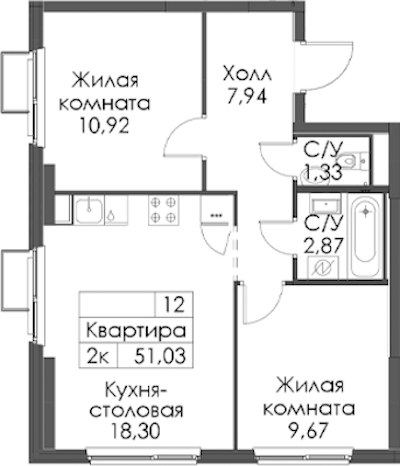 • Площадь51,03 м2