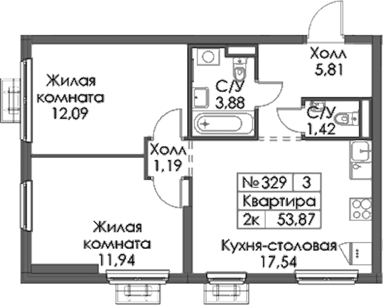 • Площадь53,87 м2