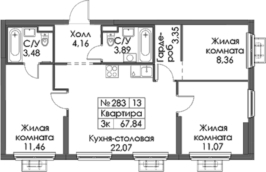 - Площадь67,84 м2