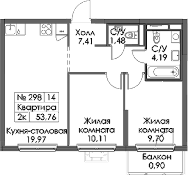 • Площадь53,76 м2