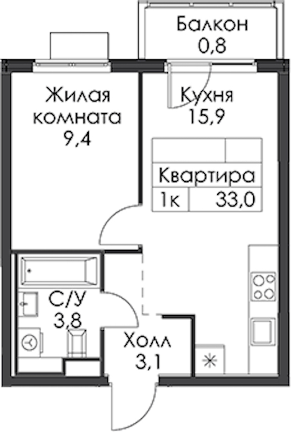 - Площадь33 м2