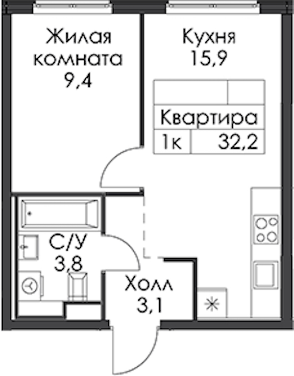 - Площадь32,2 м2